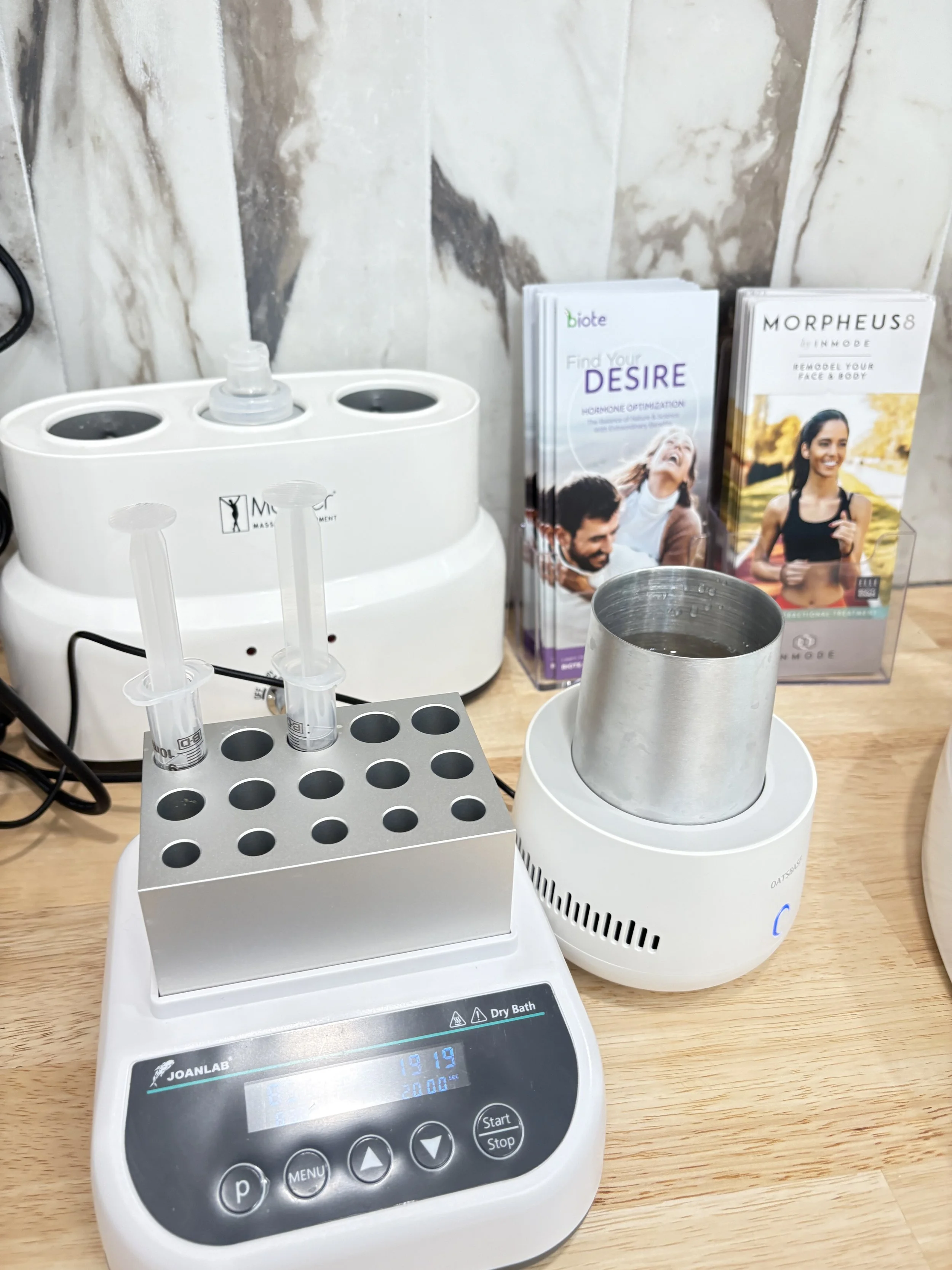 We perform a quick blood draw, then process the tube in a specialized centrifuge. The PRP or PRF layer is collected and placed with precision into targeted areas using fine needles or micro-needling techniques to support volume, texture, and overall skin quality.
